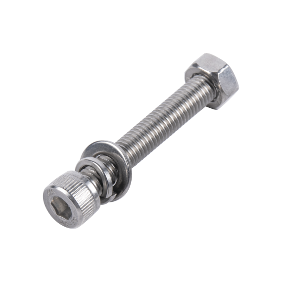 Tornillo acero inoxidable M8*60 para montajes de módulos foto voltaicos incluye arandela plana y de presión.