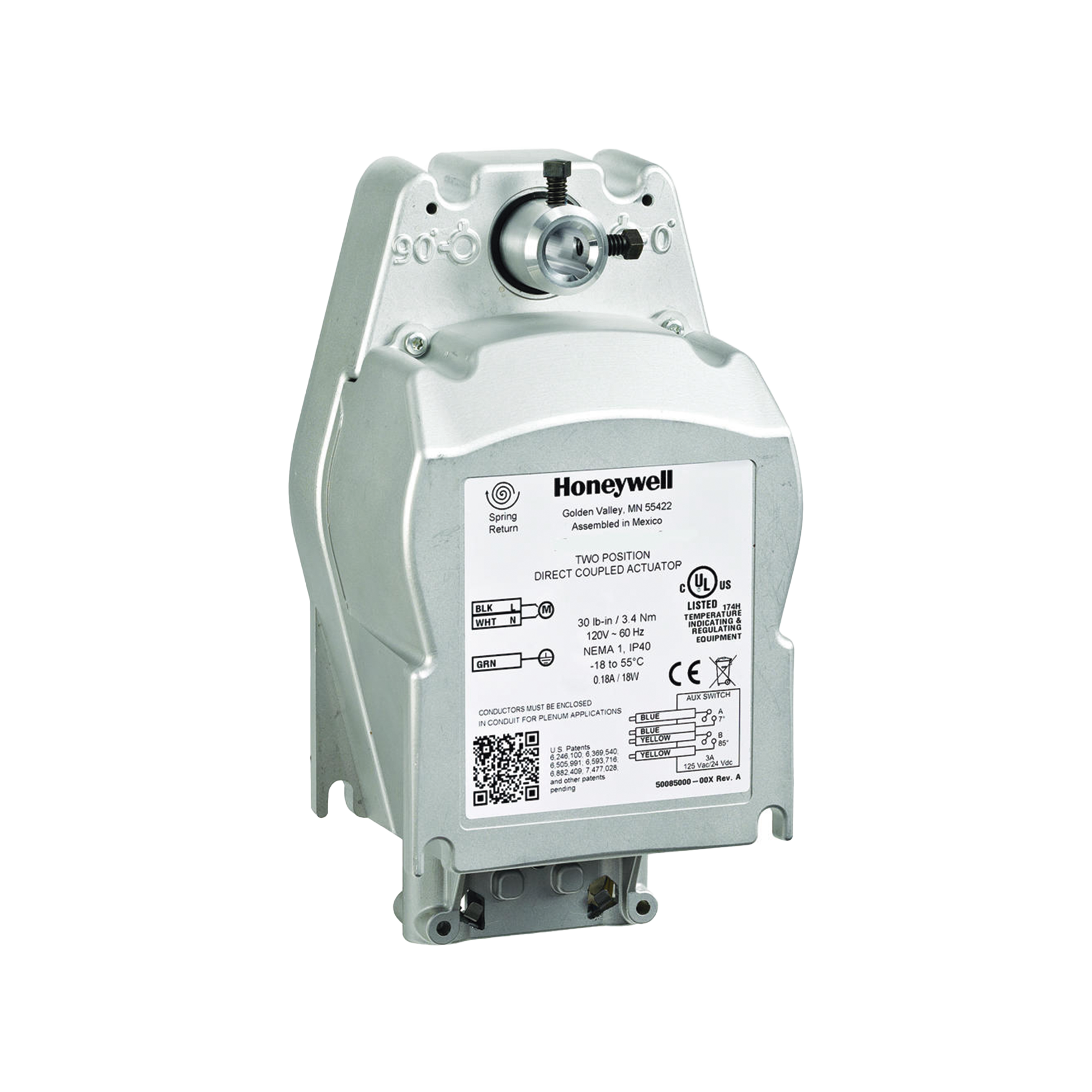 El MS4109 es un actuador de dos posiciones de acción rápida, de retorno por resorte, acoplados directamente (DCA) para reguladores de humo y fuego (control de encendido/apagado). El actuador acepta una señal de encendido/apagado de un controlador de un solo polo y un solo tiro (SPST). El montaje reversible permite que el actuador se utilice para la rotación del resorte en el sentido de las agujas del reloj (cw) o en sentido contrario a las agujas del reloj (ccw).