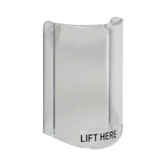 Moldeado en un material de policarbonato superresistente. El resorte de torsión de acero inoxidable mantiene la cubierta en una posición cerrada. Protege del vandalismo y daños accidentales.