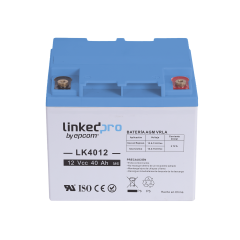 LK4012 Batería  AGM -VRLA de 12 Vcc ; 40 Amper Hora   La serie de baterías LINKEDPRO, estan diseñadas con tecnología AGM-VRLA ( Fibra de vidrio absorbente, con válvulas de regulación), placas de alto rendimiento y electrólito para proporcionar una...