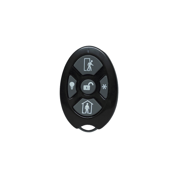 Es un dispositivo portátil diseñado para controlar de manera remota un sistema de seguridad, que permite armados, desarmados y disparar alarmas de pánico, además de funciones de automatización del hogar. Incluye encriptación inalámbrica segura y ofrece una indicación de batería baja.