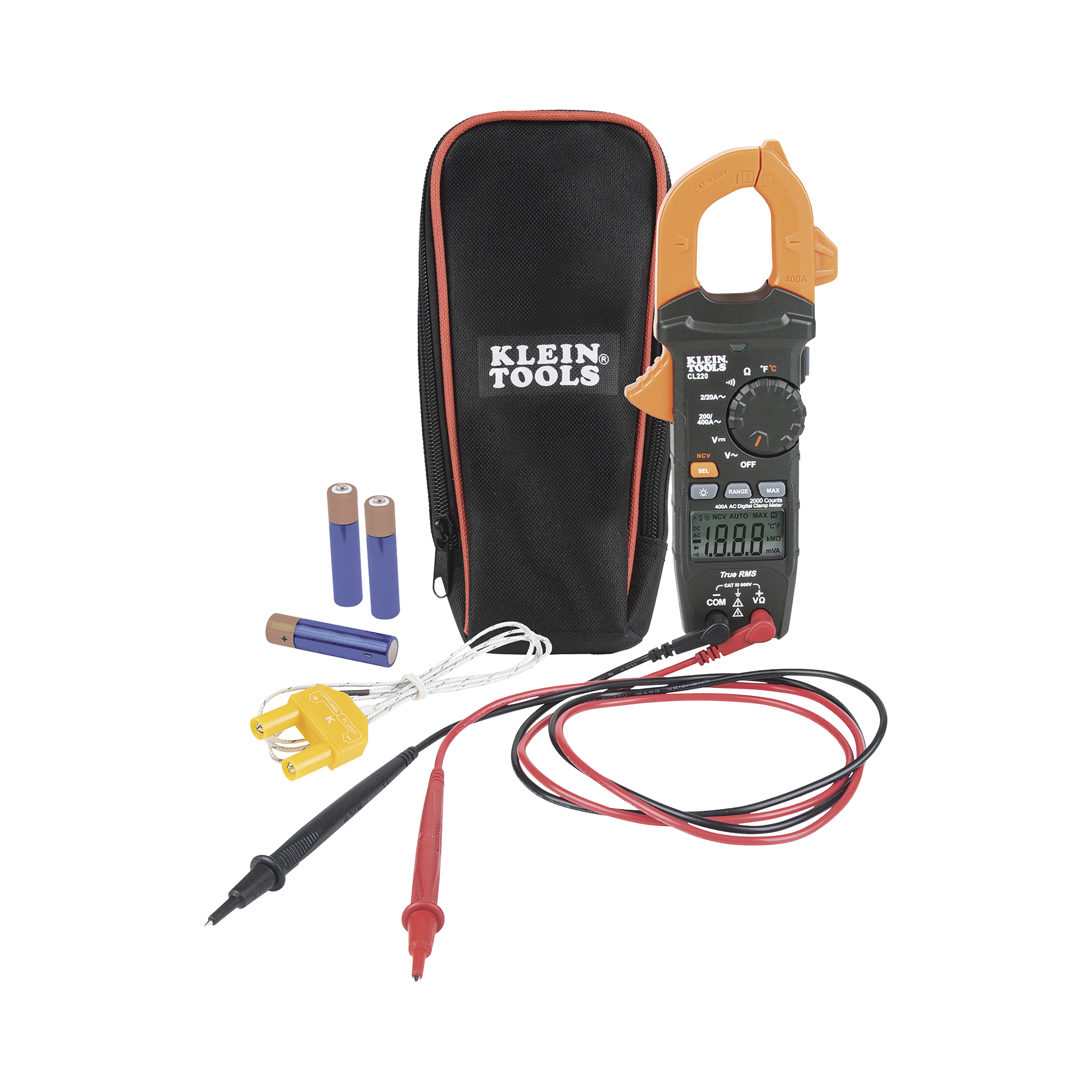- Incluye un estuche para transporte, cables de prueba con capuchones de seguridad CAT III/CAT IV, termopar, instrucciones y 3 baterías AAA
