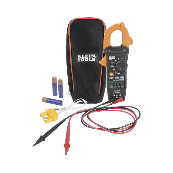 - Mide corriente CA y NCVT con una pinza, así como voltaje CA/CD, resistencia y continuidad con cables de prueba y la temperatura con un termopar