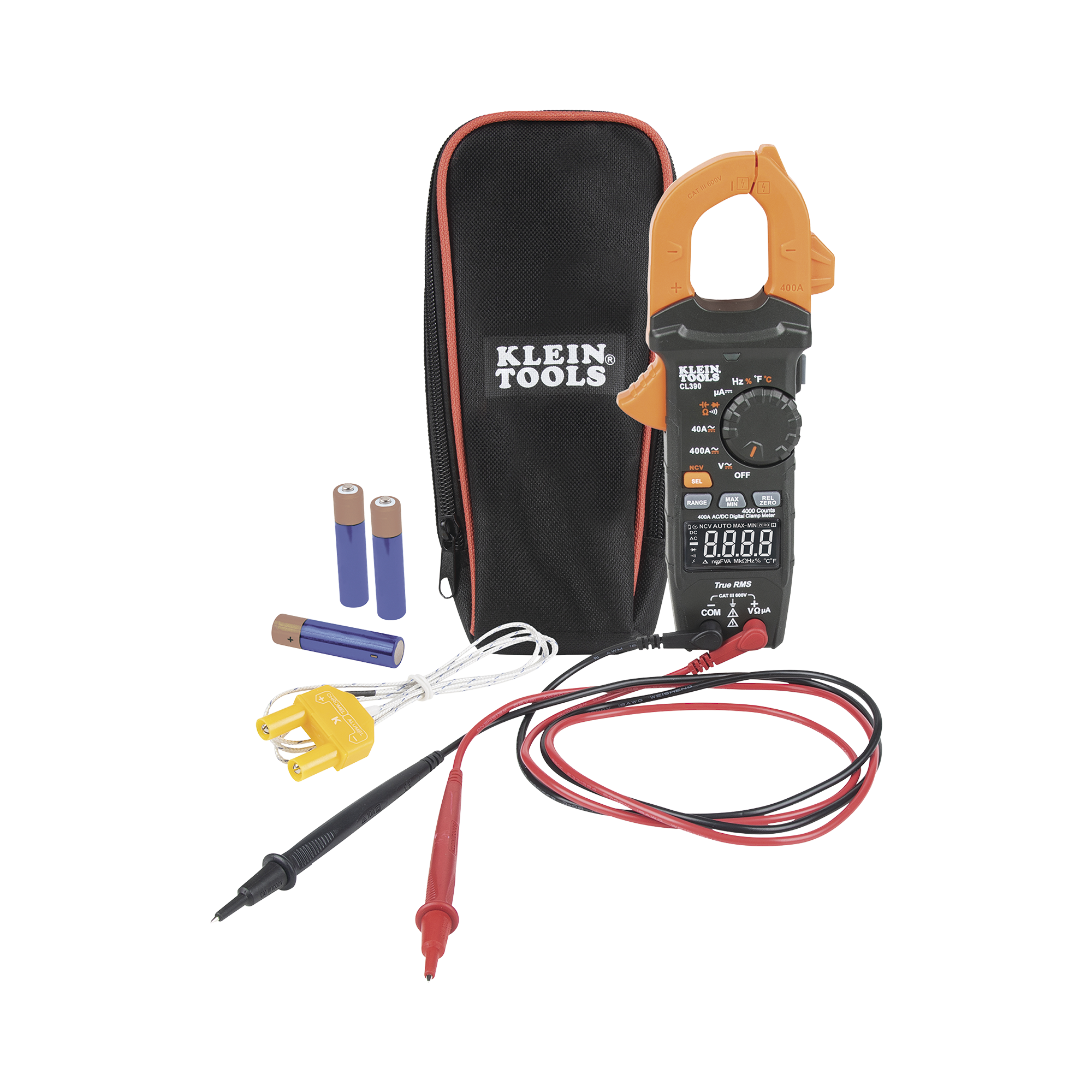 - Mide corriente CA/CD y NCVT con una pinza, así como voltaje CA/CD, resistencia, frecuencia, microamperios CD, capacitancia, ciclo de servicio, prueba de diodo y continuidad con cables de prueba, y la temperatura con un termopar.
