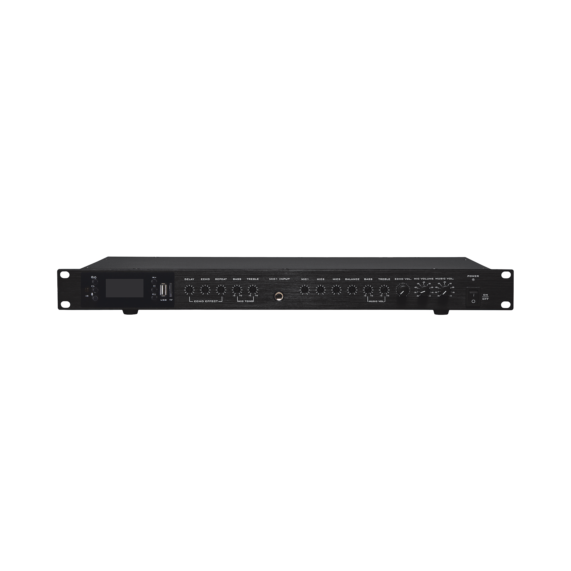 - Ecualizador 2 bandas para MIC y para Música