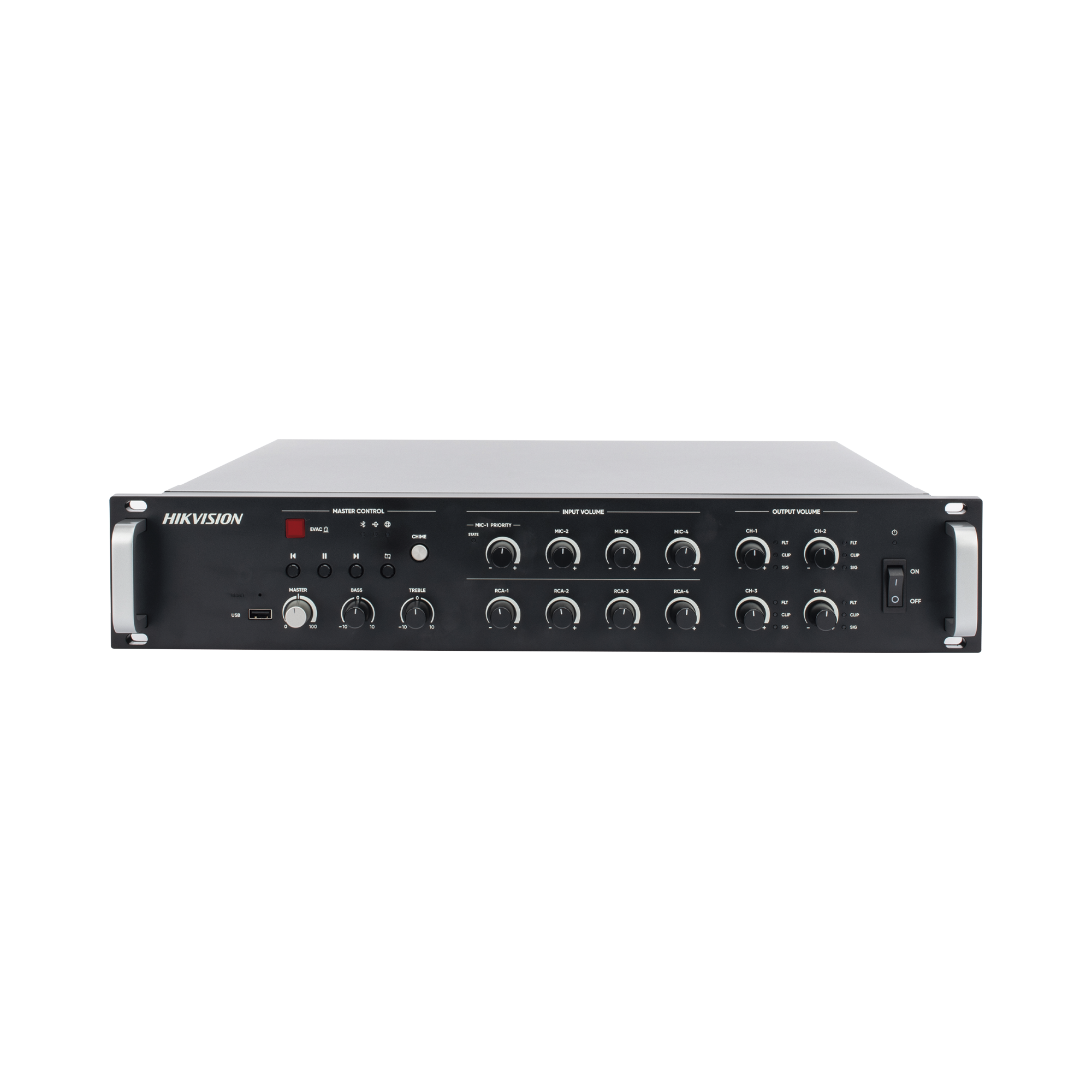 Amplificador de Red | 4 Zonas de 250W | 100V/70v | Calendarización de eventos | Biblioteca de Materiales de Audio | Entrada de Alarma | Hik-Connect /Hikcentral profesional DS-QAZ1A1000G1-VB4