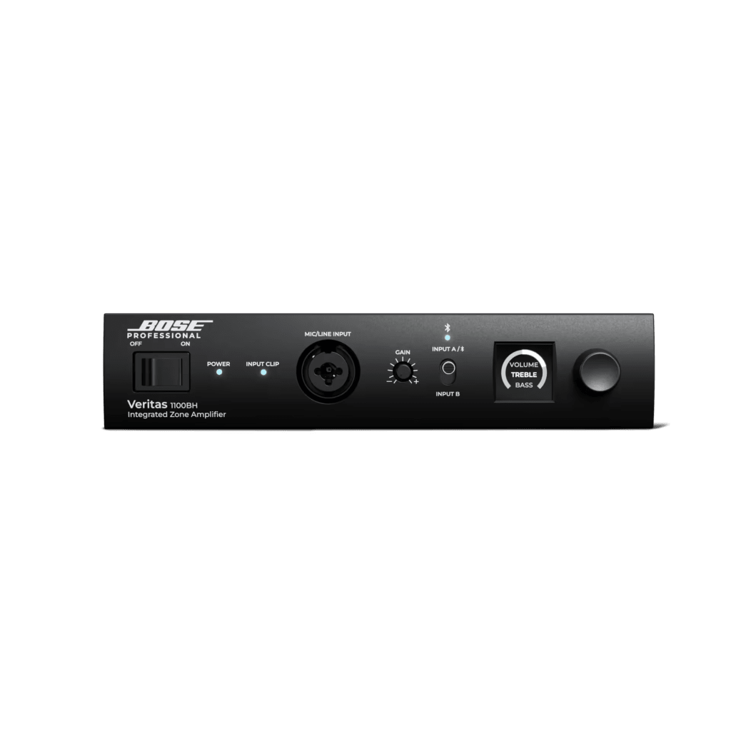 El Veritas 1100BH de Bose Professional es un amplificador mezclador inteligente de alta calidad diseñado para aplicaciones comerciales que requieren música ambiental, primer plano y sistemas de voceo. Con una potencia nominal de 100W en sistemas de alta impedancia (70V/100V), este equipo compacto ofrece un rendimiento superior gracias a su DSP avanzado de 24 bits/48 kHz, conectividad Bluetooth 5.0 y una intuitiva pantalla OLED para configuración simplificada. Ideal para espacios comerciales pequeños, oficinas y tiendas minoristas.