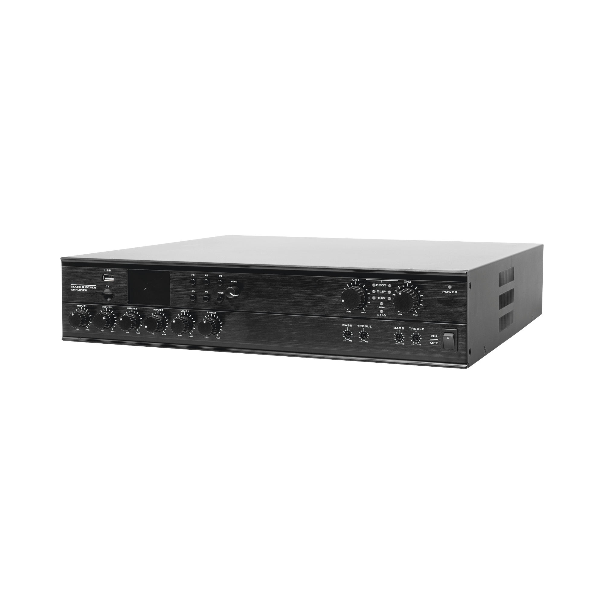 El amplificador mezclador digital de matriz de 2 canales de la nueva serie UC, con mayor eficiencia, es ideal para sistemas de sonido comerciales. Cumple con las demandas de los mercados emergentes para proporcionar equipos de alta calidad a precios asequibles. Los amplificadores mezcladores de la serie UC tienen dos salidas de 4R/100V y múltiples funciones. La serie combina muchas funciones para un uso conveniente y flexible, incluidos reproductores multimedia Bluetooth y USB; Admite salida de 4 Ω/8 Ω/ 100 V; cada canal de salida está equipado con un control de graves y agudos independiente. Es adecuado para clubes, estadios, centros comerciales y otros sistemas de transmisión bajo demanda de amplificadores de potencia de alta potencia multicanal.