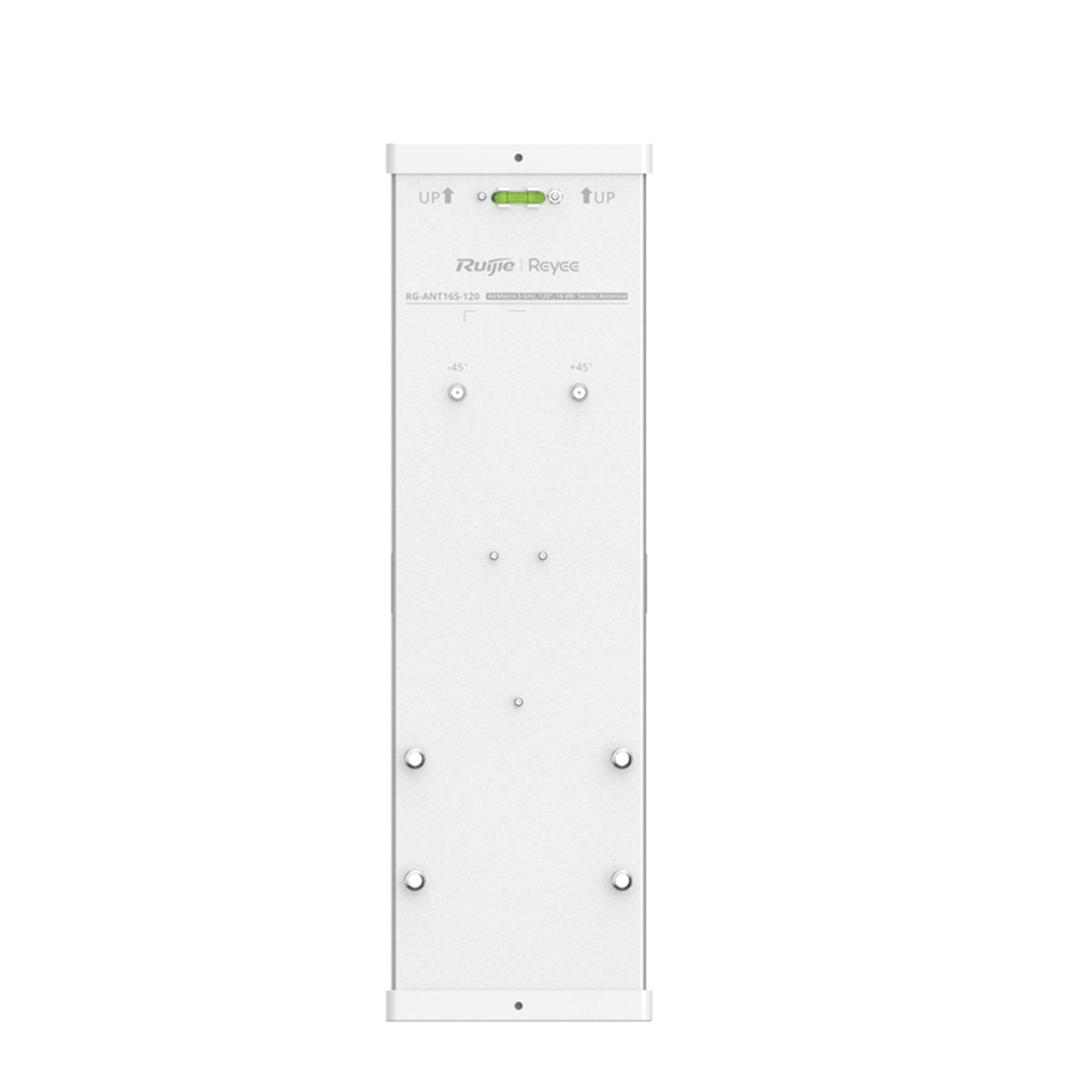 Antena Sectorial de 120° AirMetro con 16 dBi en Banda 5Ghz (5150-5850 Mhz) Slant 45° Compatibilidad Multi-Marca para enlaces Multipunto, Conectores SMA Hembra Inverso. RG-ANT16S-120