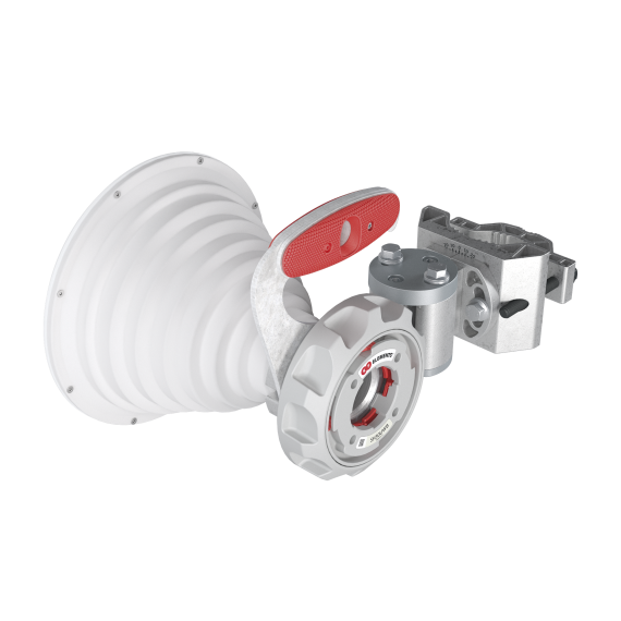 Las antenas WB simétricas cuentan con nuestro innovador conector TwistPort™, un puerto de guía de ondas patentado de bloqueo rápido. El TwistPort™ es prácticamente sin pérdidas: con radios construidos según nuestro diseño de referencia, no hay conectores RF coaxiales ni cables RF que provoquen pérdida de señal. Los adaptadores TwistPort™ (TPA) permiten conectar radios de terceros. Conectar TwistPort™ es increíblemente simple: 'girar y bloquear', ¡todo con una mano!