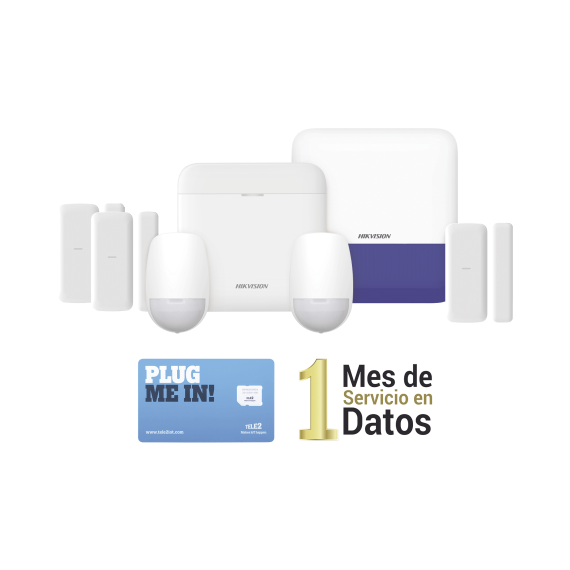 (AX PRO) KIT de Alarma AX PRO con GSM (3G/4G) / Incluye: 1 Hub / 2 Sensores PIR / 3 Contactos Magnéticos mini / 1 Control Remoto / 1 Sirena Inalambrica Exterior / 1 WiFi / 1 MICROSIM30M2M con 1 mes de servicio/Compatible con Hik-Connect P2P DS-PWA48-KSDV