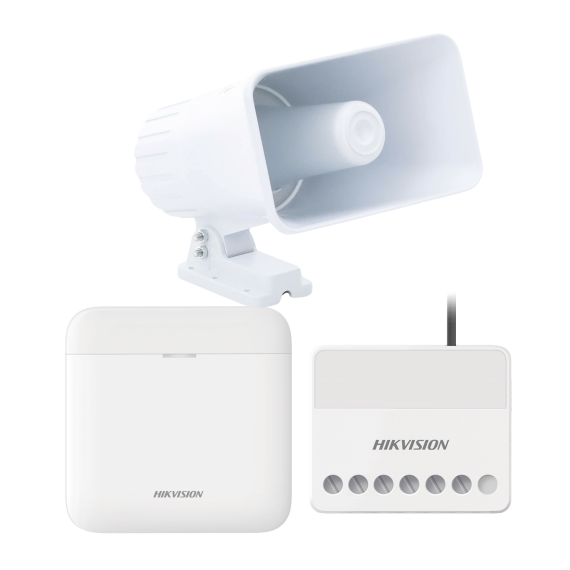 (AXPRO) KIT de alarma AX PRO con sirena cableada 30W / Incluye: 1 Hub con Batería de respaldo / 1 Sirena Cableada de 30 Watts IP65 / 1 Relevador Inalámbrico 0 a 36 VCC / Compatible con Hik-Connect P2P AXPRO-KIT-SIRENA-C