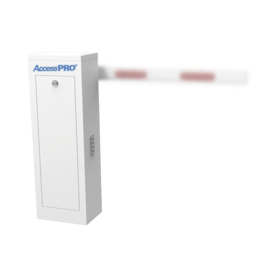 Barrera vehicular derecha compatible con brazo telescópico de hasta 6 metros (No incluido).