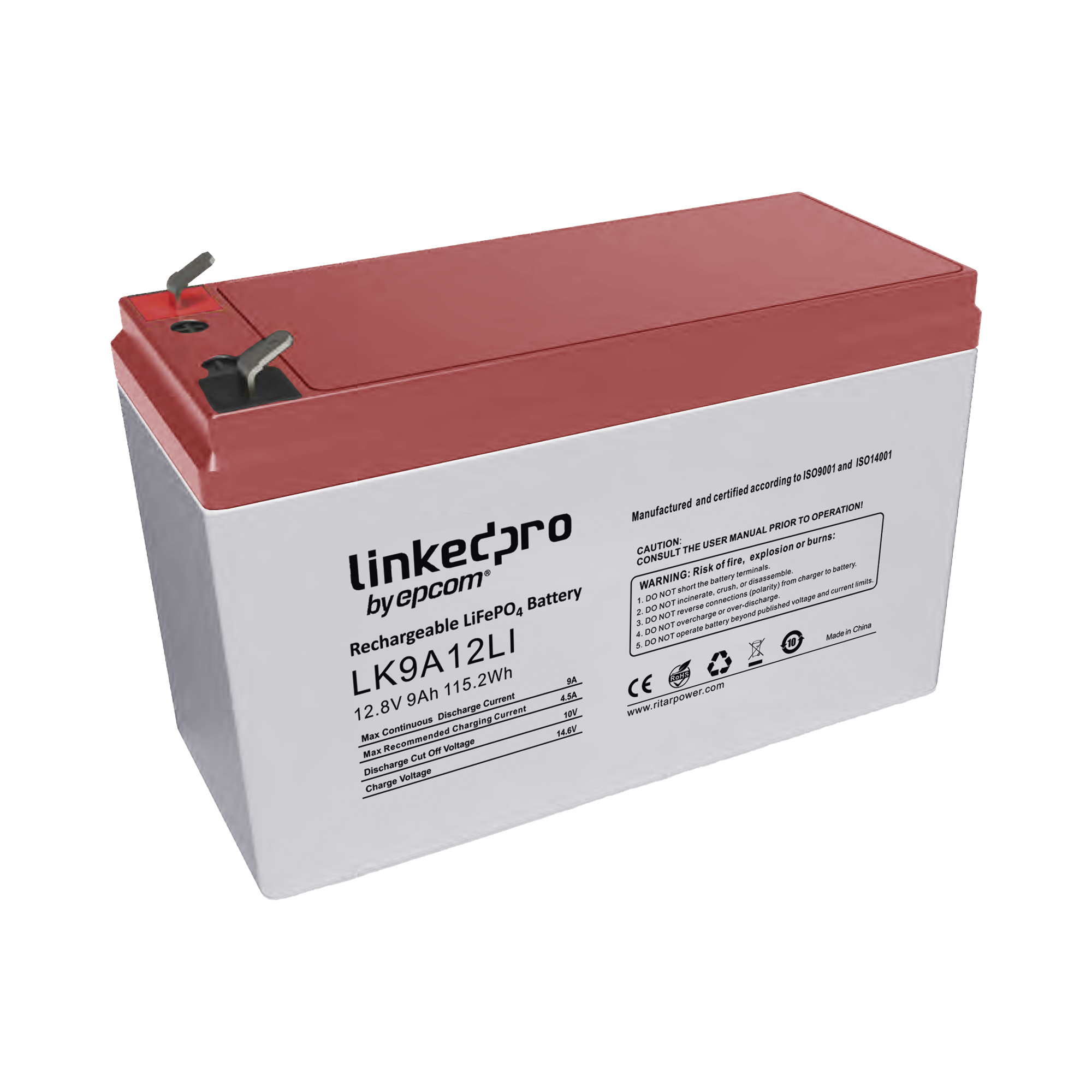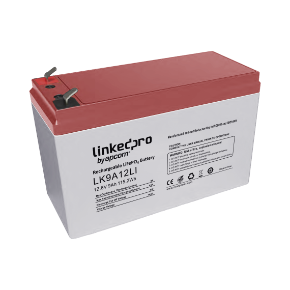 Batería de Litio 12.8 Vcc / 9 Ah / Tecnología LiFePO4 /2000 Ciclos de Vida/ Para uso en equipo electrónico, UPS (litio) / Incendio/ Control de acceso / Video Vigilancia / Terminales F1 ( Incluye adaptador para terminal F2 ) LK9A12LI