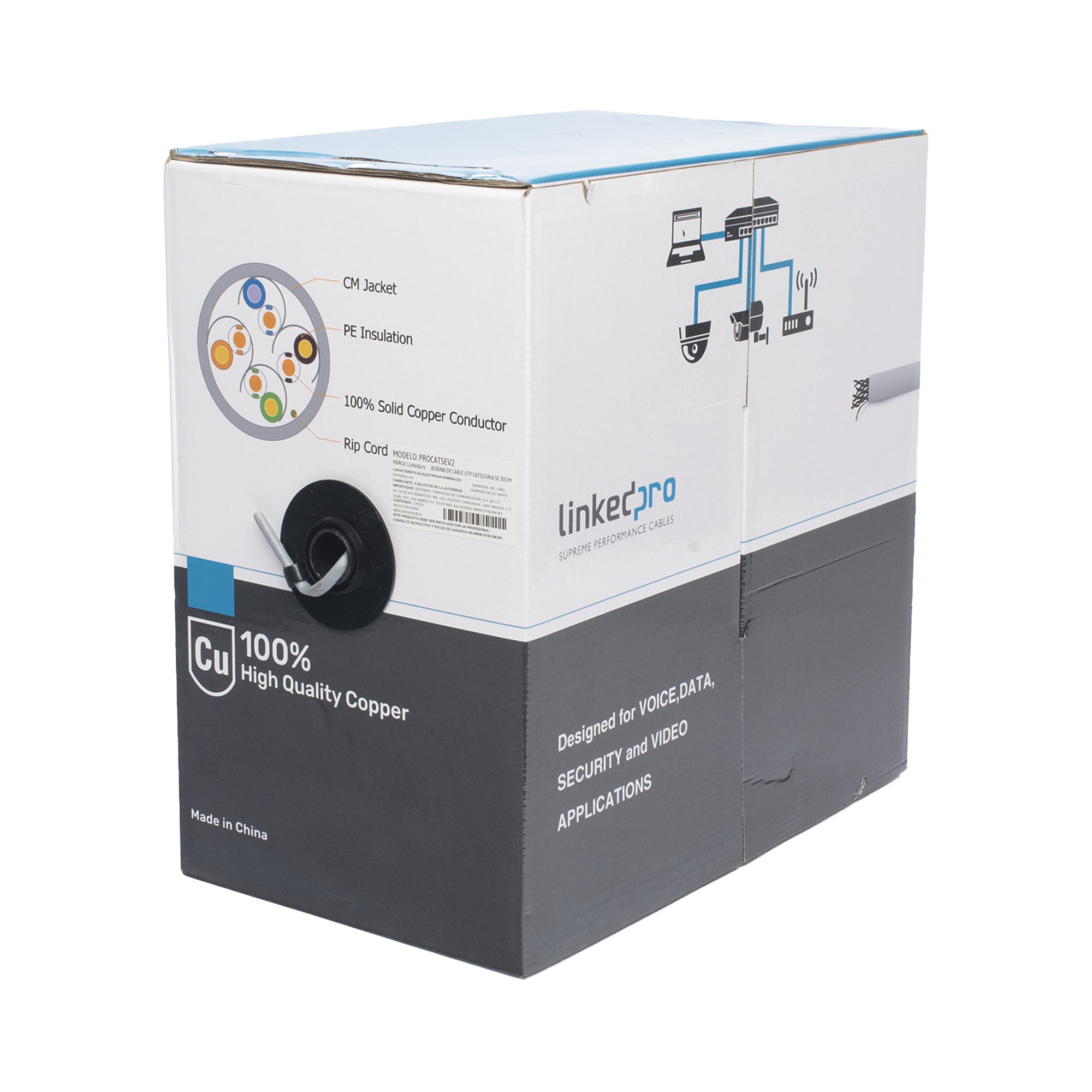 Bobina de Cable de 305 Metros (1000 Pies), Cat5e, Alto Desempeño, de Color Gris, UL, para Aplicaciones en Video Vigilancia, Redes de Datos. Uso Interior PRO-CAT-5E-V2
