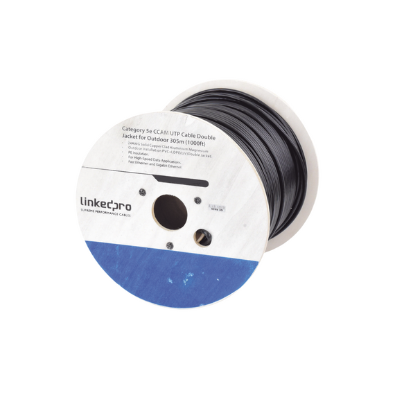 Bobina de Cable de 305 Metros (1000 Pies) Cat6, Aleación de Cobre y Aluminio (CCA), Color Negro, Uso Intemperie, Doble Forro EPCAT6V2EXT