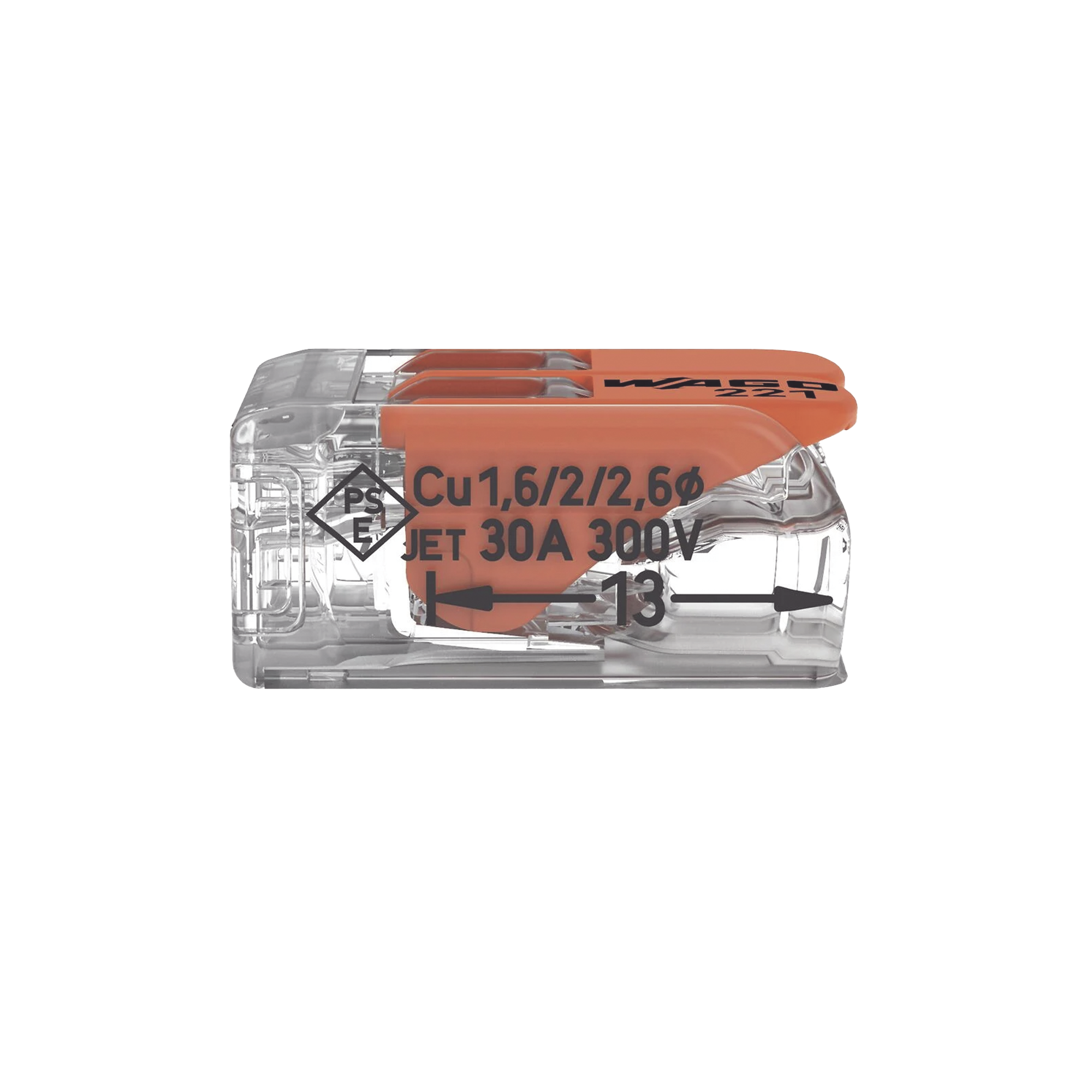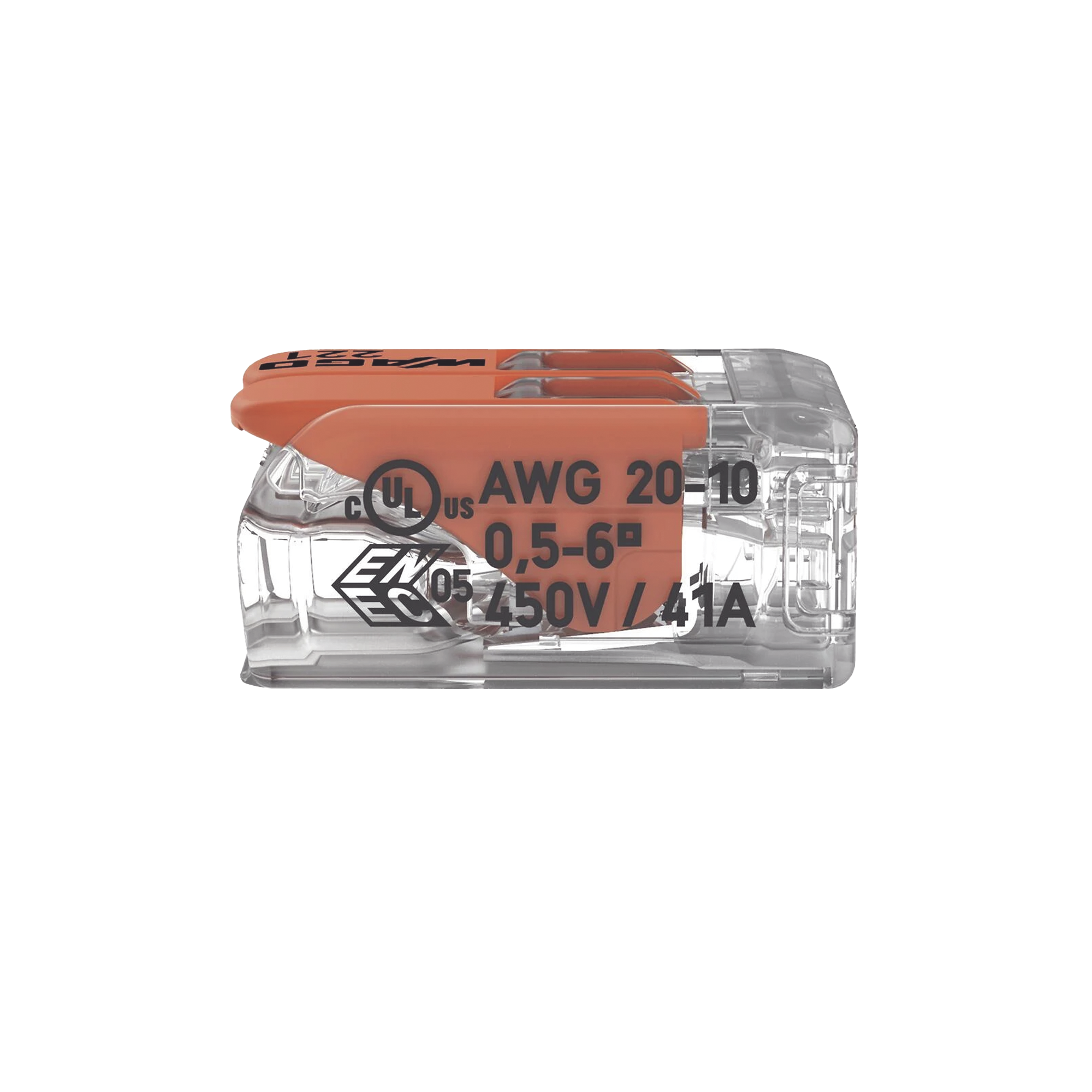 Borna de Conexión con Palancas, 2 Polos, CAGE CLAMP, Transparente, 6 mm² Máx, 32A 450V, UL ENEC, T85 221-612