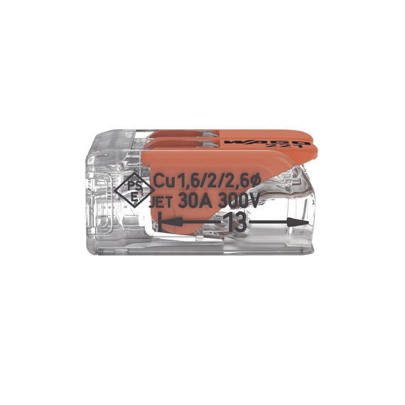 Bornes de conexión con palancas de la Serie 221 diseñados para conexiones eléctricas rápidas y seguras. Utiliza tecnología CAGE CLAMP® que permite la conexión de todos los tipos de conductores (rígidos, semirrígidos y flexibles) con secciones desde 0.5 hasta 6 mm². Ideal para instalaciones eléctricas profesionales en cajas de derivación, sistemas de iluminación de baja tensión y distribución de cableado en aplicaciones residenciales e industriales. Cumple con normativas internacionales incluyendo EN 60998, UL 486C y certificaciones marinas ABS, DNV GL y LR.