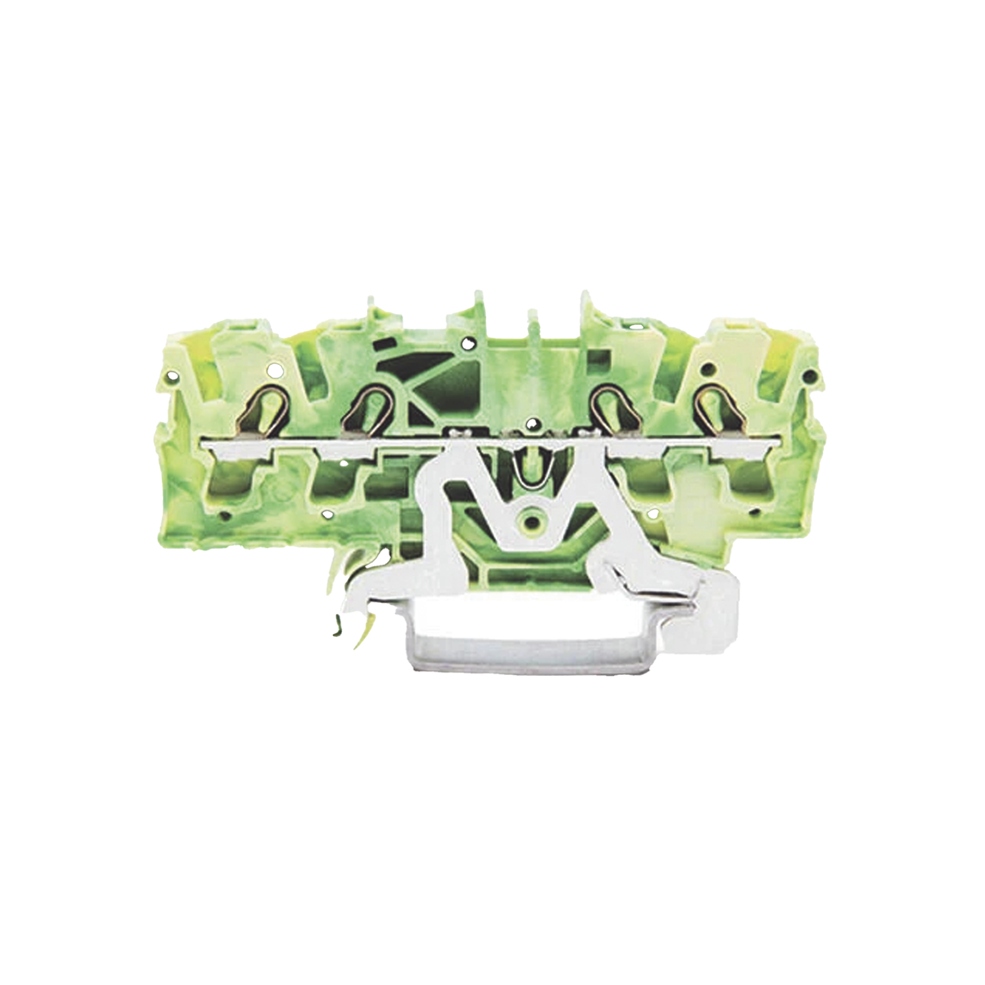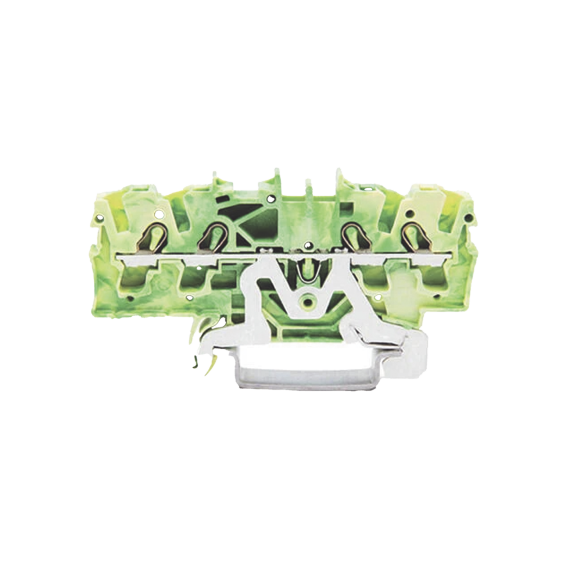 Borna de Tierra, 4 Conductores, 2.5 mm², Aplicaciones Ex e II, Push-in CAGE CLAMP®, Marcaje Lateral y Central, Carril DIN 35 x 15/7.5, Verde-Amarillo 2002-1407