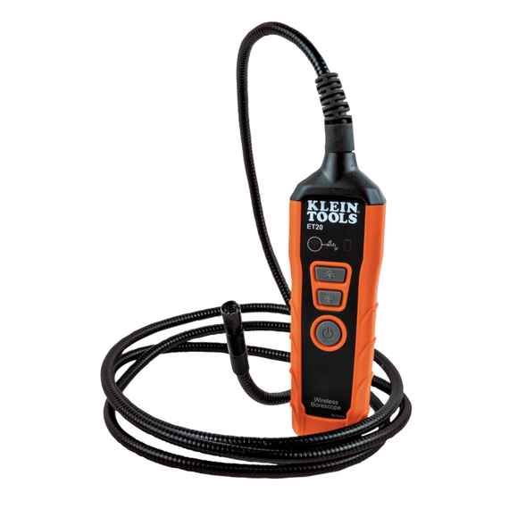 El nuevo boroscopio ET20 de Klein Tools se conecta rápidamente a su teléfono inteligente gracias a la señal wifi integrada que lo convierte en una herramienta inteligente. Instale la aplicación compatible en su teléfono para ver, grabar, guardar y compartir imágenes y videos por texto o correo electrónico. Este boroscopio le permite capturar fotos y video de alta calidad directamente en el dispositivo a 30' (9m) de distancia. Cuenta con cámara impermeable de 9 mm con cable blindado y cuello de cisne de 6' (1,8 m), LED integrados, conveniente clip de bolsillo y batería recargable de iones de litio.