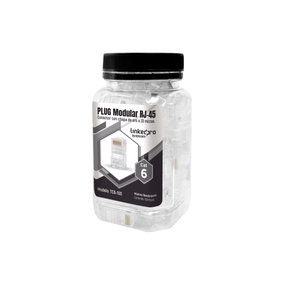 Bote con 100 Piezas de Plug Modular RJ45 Cat6 sin Blindaje, Chapado de Oro a 30 Micras para Durabilidad Extrema TC6-100