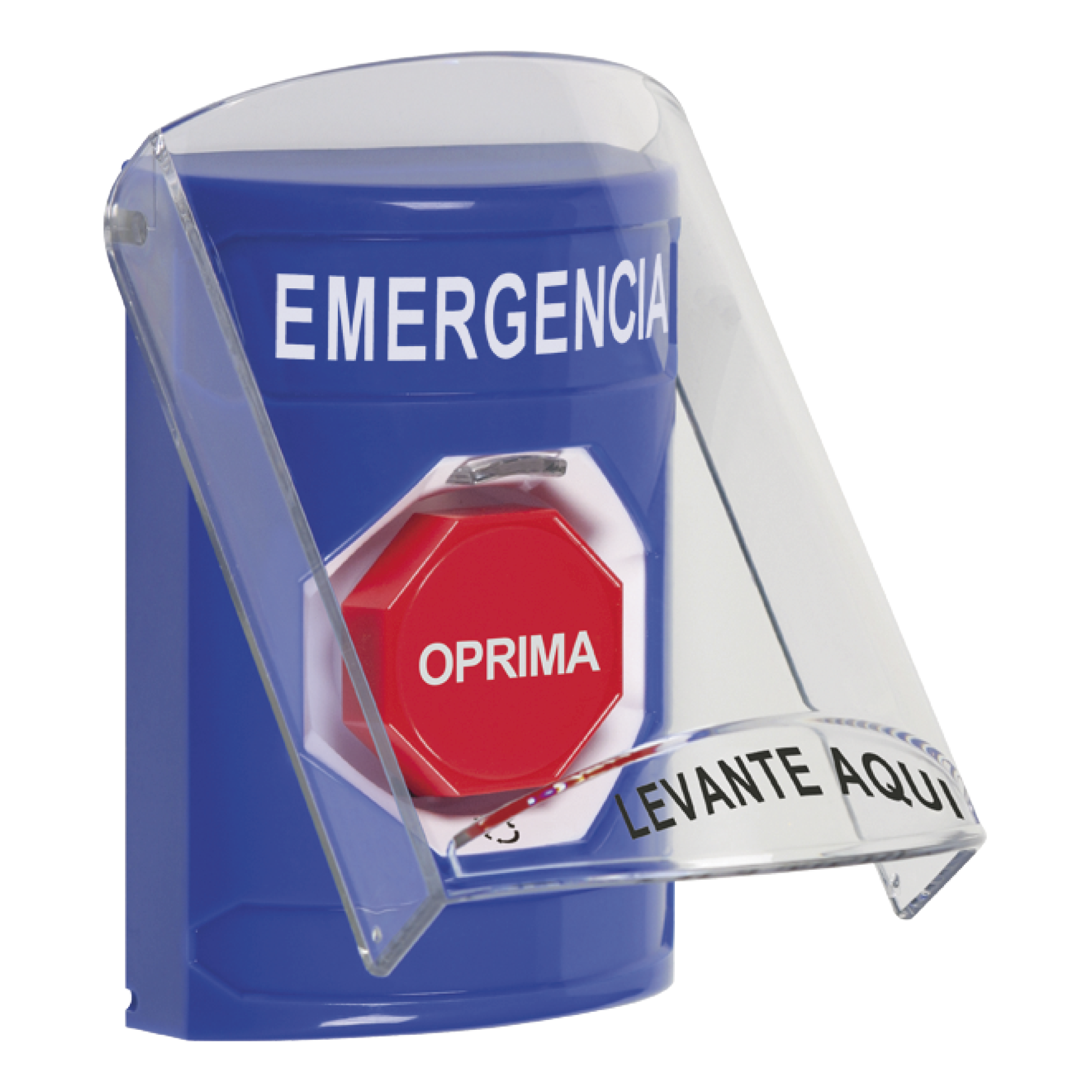 Botón Multipropósito, Color Azul, De Superficie, Con Tapa De Policarbonato, Sin Bocina Prealarma, Para Interior, Girar Para Restablecer, Texto De Emergencia, Español SS2429EM-ES