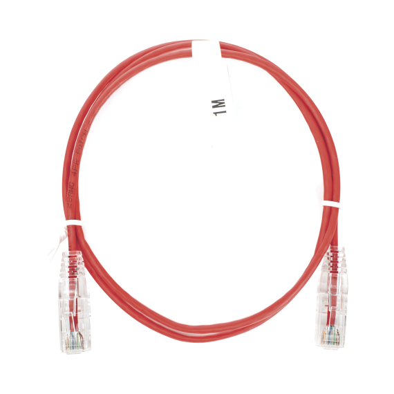 Cable de Parcheo Slim UTP Cat6 - 1 Metro (3.28 Pies), Rojo, Diámetro Reducido (28 AWG) LP-UT6-100-RD-28