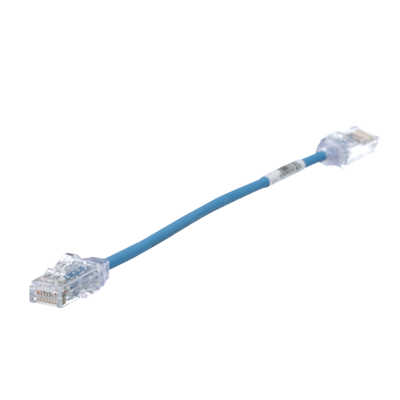 Los cables de parcheo de categoría 6/Clase E, UTP, de diámetro reducido están construidos con cable de cobre de par trenzado sin blindar calibre 28 AWG (CM/LSZH de doble clasificación), con plugs modulares RJ45 de alto rendimiento. Los cables de conexión se ofrecen en múltiples longitudes y colores para flexibilidad de diseño.