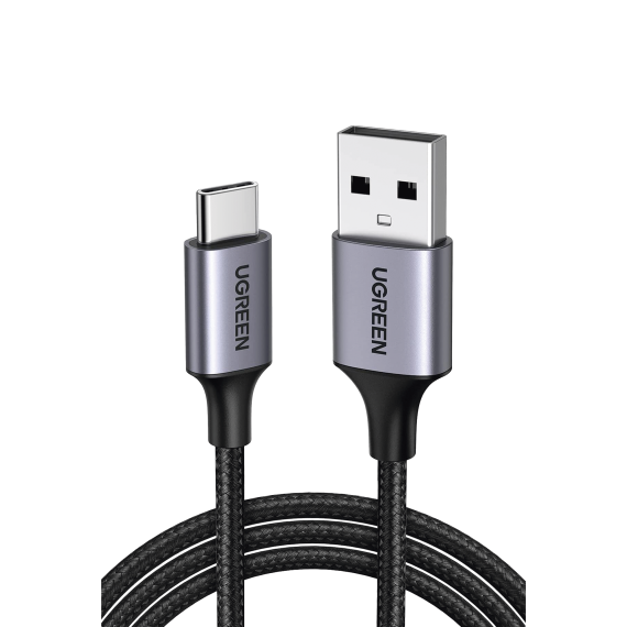 Cable USB-A a USB-C | 1 Metro (3.28 Pies) | Transferencia de Datos de 480 Mbps | Carga Rápida | QC 4.0/3.0/2.0 | FPC | AFC | Protección Integrada | Caja de Aluminio | Nylon Trenzado | Color Negro 60126