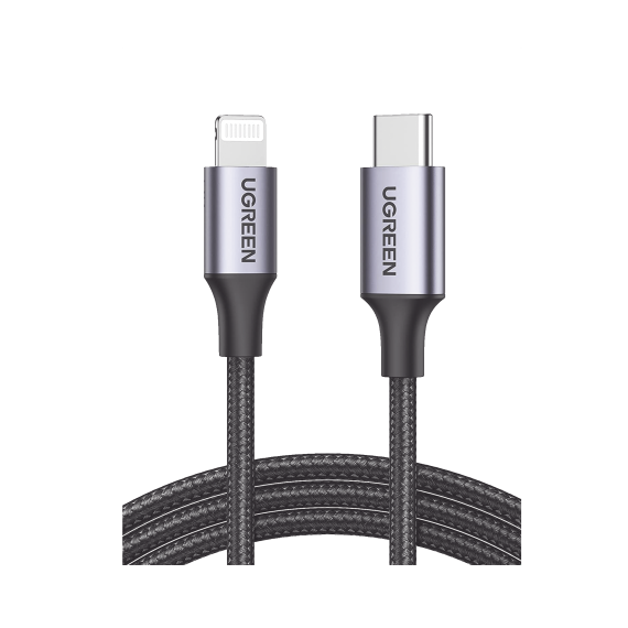 Cable USB-C a Lightning | 1 Metro (3.28 Pies) | Certificado MFi | Carga Rápida 60W | 480 Mbps | Conector C94 | Adecuado para iPhone, iPad y iPod | Protección Integrada | Caja de Aluminio | Nylon Trenzado | Color Negro 60759