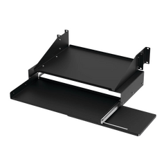 Características principales Charola de teclado extraíble con estante para monitor se monta en los rieles frontales y posteriores de un rack de marco con apertura estándar de 3'.