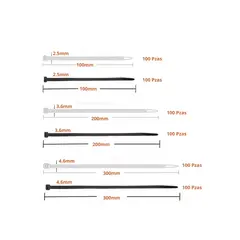 SBE TECH CN36X200 - Cincho sujetacable 3.6x200 mm color blanco, 100 piezas, nylo