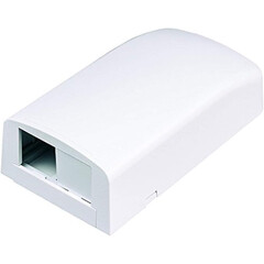 Tipo: Caja de montaje en superficie. Color: Blanco Mate. Tipo de etiqueta: Opcional adhesivo. No. de espacios para módulo: 2. No. de puertos: 2. Tipo de módulo: Keystone.