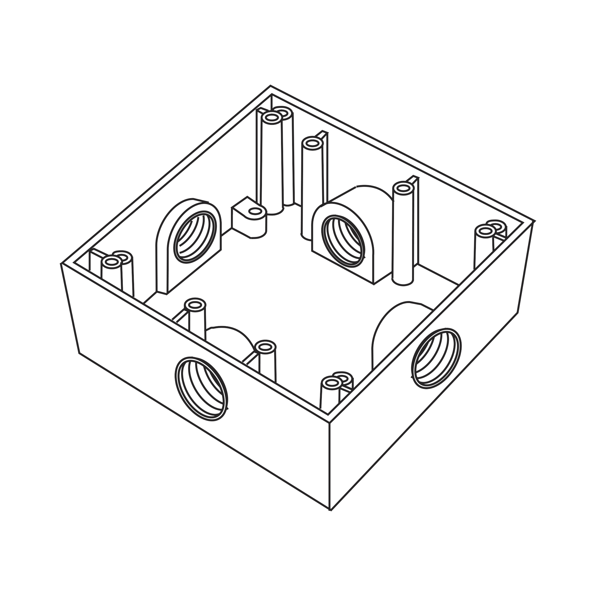 - Profundidad de 67 mm en caja de rosca de 25.4 (1") y profundidad 50.8 mm (2") en cajas de rosca de (1/2" y 3/4").
