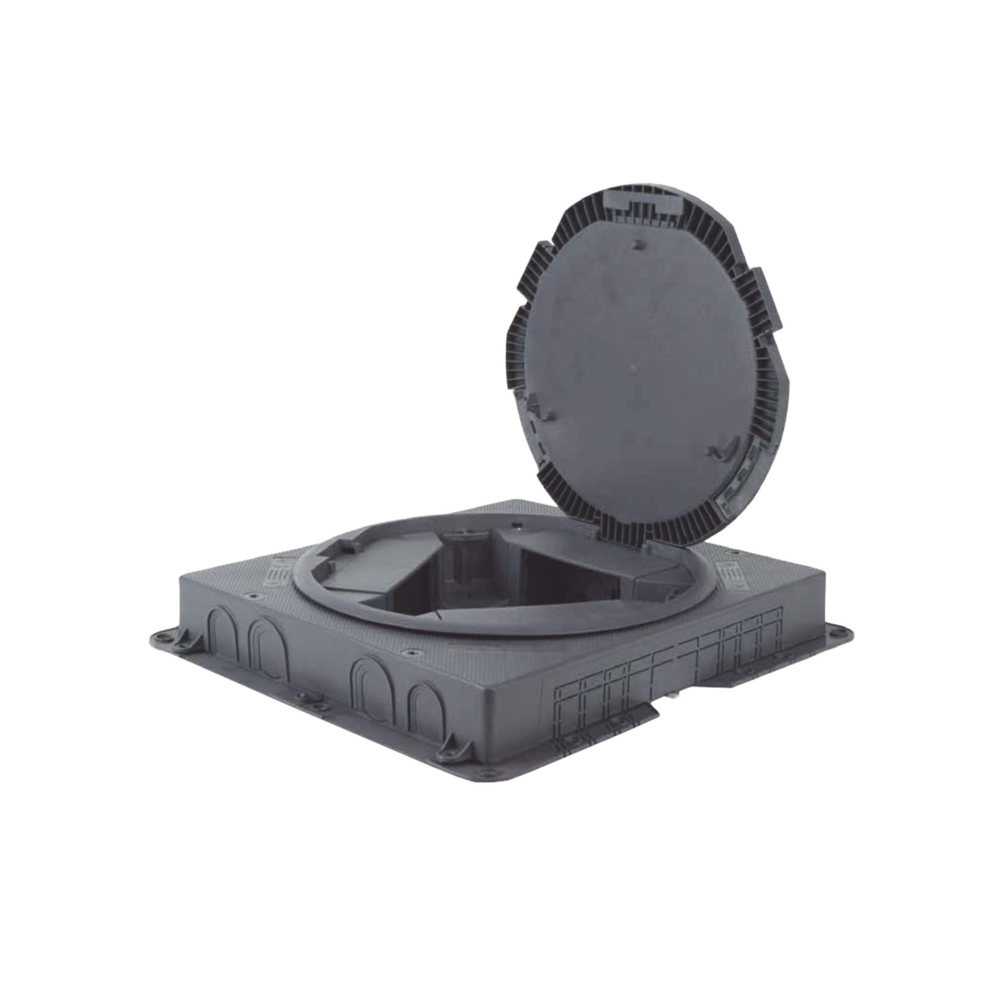 Esta caja ha sido desarrollada específicamente para instalaciones empotradas en pavimentos y losas de concreto, incorporando una cubeta de instalación que se coloca previamente al colado. Esto asegura una correcta alineación, evita desplazamientos durante la obra y facilita el montaje final de los mecanismos. Gracias a su profundidad reducida, es ideal para proyectos donde no se dispone de gran altura de empotramiento, sin comprometer la funcionalidad ni la seguridad de la instalación.