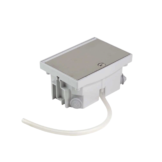La cubeta incorpora un nuevo sistema de drenaje, que permite evacuar líquidos acumulados mediante un tubo de silicona conectado al sumidero, evitando la condensación interna y prolongando la vida útil de las conexiones. Además, incluye conos estancos que mantienen el grado IP en el acceso del cableado y una tapa protectora que impide la entrada de áridos durante el fraguado del suelo.