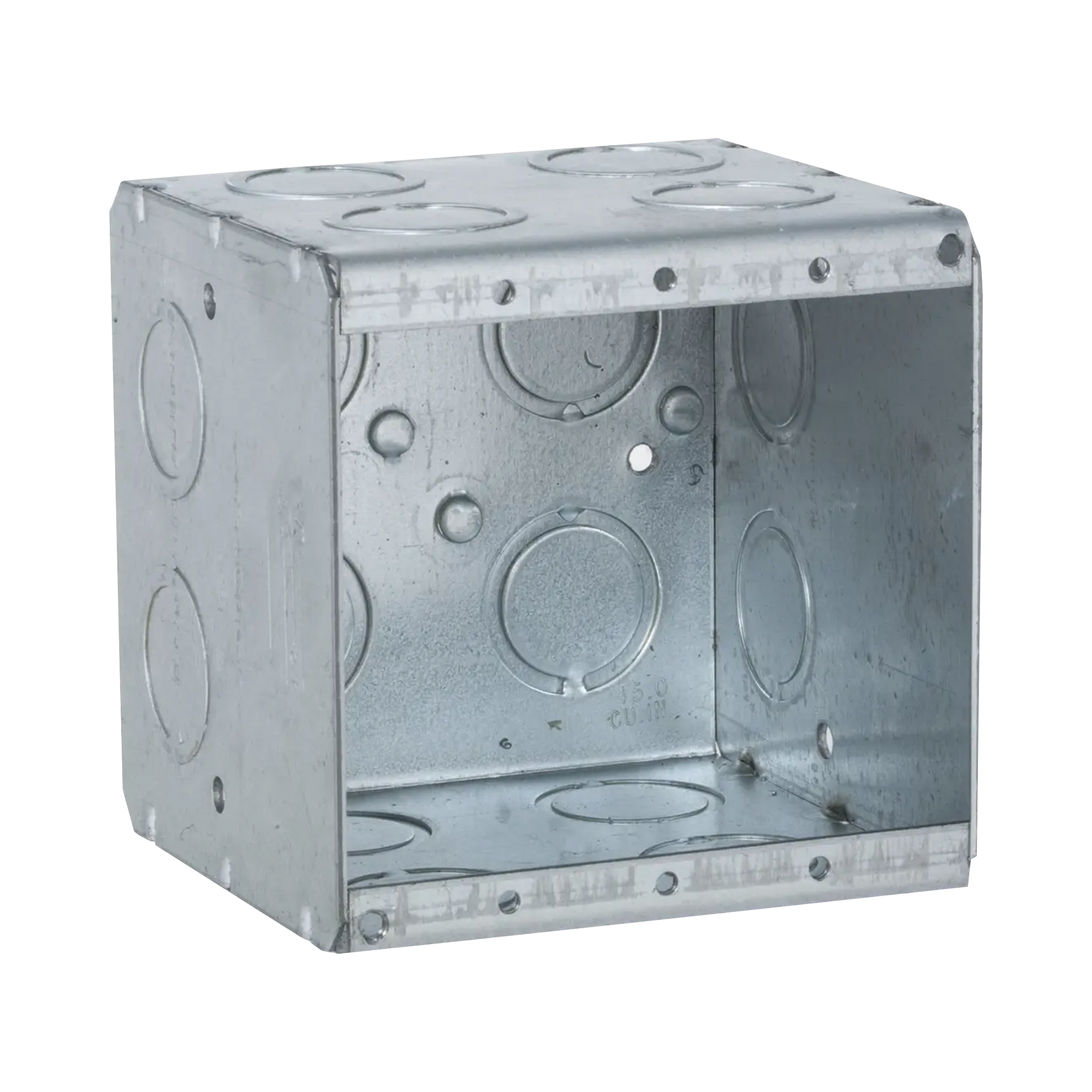 Las cajas multigang de acero galvanizado de 3 1/2" de profundidad con entradas para tubería de 1/2" y 3/4".