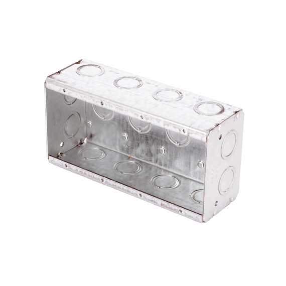 Las cajas multigang de acero galvanizado de 2 1/2' de profundidad con entradas para tubería de 1/2' y 3/4'.