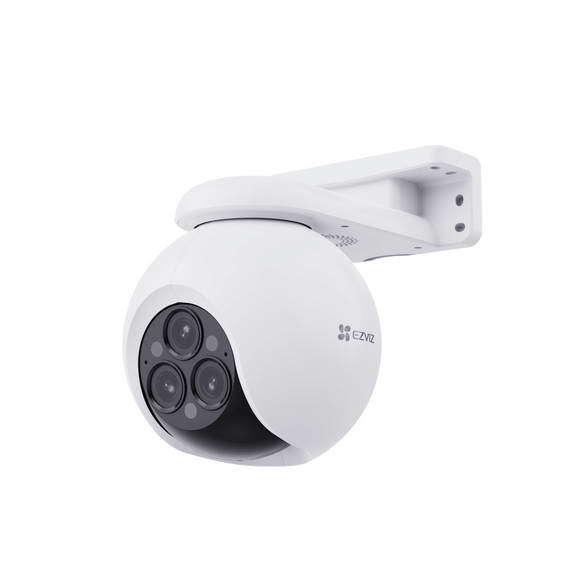 La H80f Multi, la primera cámara para exteriores con triple lente de EZVIZ, está diseñada para brindar una seguridad excepcional en exteriores con una profesionalidad sin precedentes. La capacidad integrada de tres potentes lentes 2K+ permite a la cámara capturar simultáneamente una vista amplia y primeros planos, con un increíble zoom de 12x sin borrosidad. Su IA integrada detecta y enfoca eficazmente tanto a personas como a vehículos para grabar la actividad en curso de izquierda a derecha, mientras recibe alertas móviles más informativas acompañadas de fotos dobles del visitante y del vehículo.