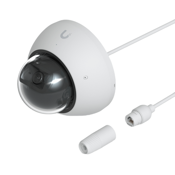 Cámara UniFi Protect G5 AI Dome Blanco, Para Interior o Exterior, 4K (8MPX), Ángulo 109.9°. Visión Nocturna IR Hasta 40m, Detecciones Inteligentes de Rostros y Placas, Audio Bidireccional, Protección IP66, Anti-Vandalismo UVC-AI-DOME-W