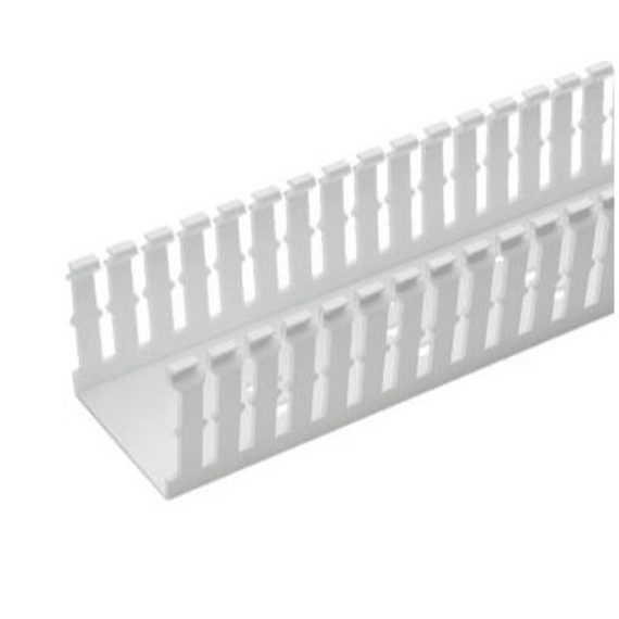 Canaleta Ranurada Angosta de PVC Sin tapa, Tipo F, 57.2 mm de Ancho, 79.8 mm de Alto y 1.8 m de Largo, Color Blanco F2X3WH6