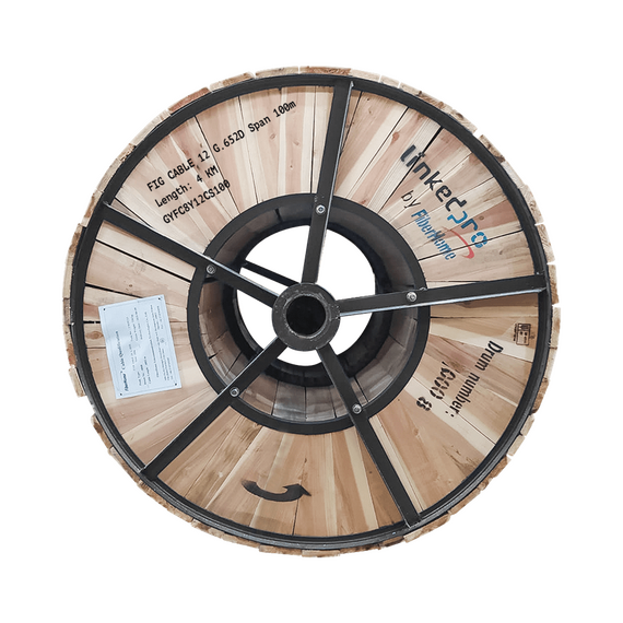 Carrete de 4 km de Fibra Óptica Aérea Figura 8 G.652D, Monomodo de 12 Hilos, Exterior, Span 100, Loose Tube GYFC8Y12CS100/4KM