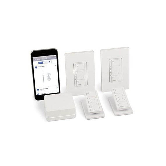 (Caseta Wireless) Kit Hub controlador, 2 atenuadores, 2 controles remotos, 2 base mesa y 2 tapas. PBDGPKG2W