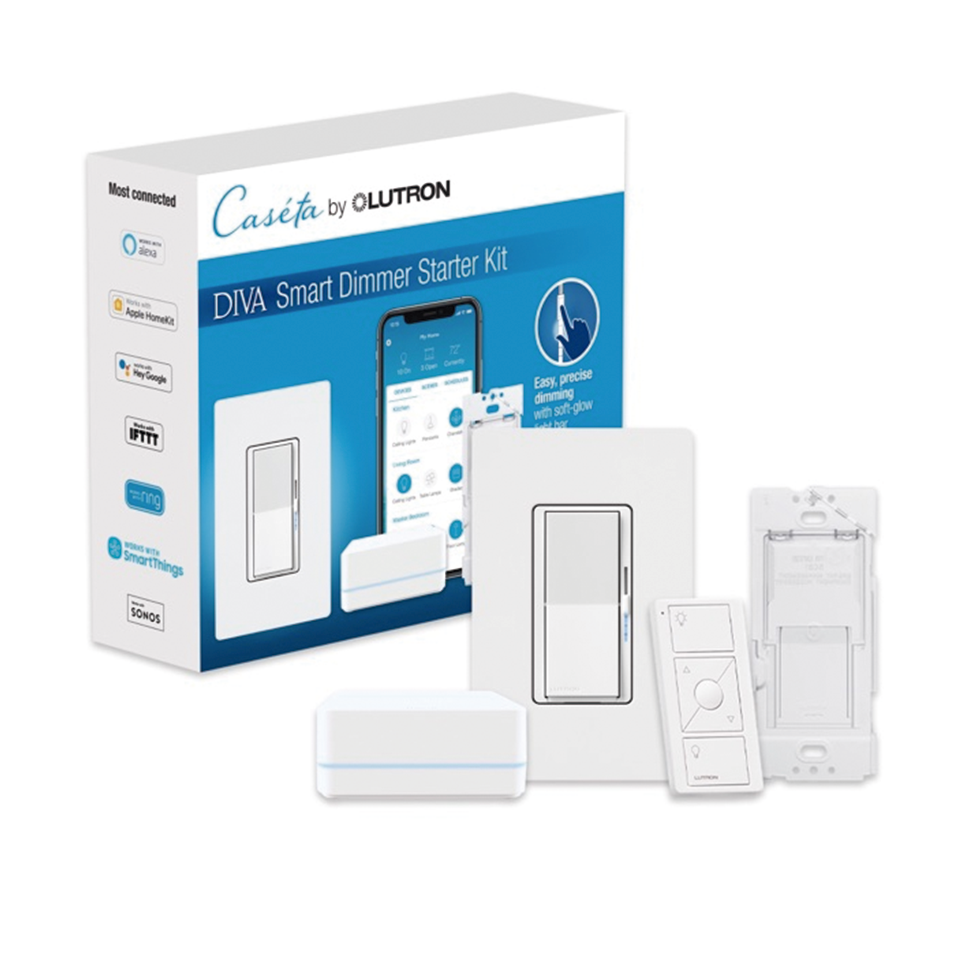 (Caseta Wireless) Kit Hub controlador, atenuador, control remoto PICO, base de pared y tapa. DVRFBDG1D