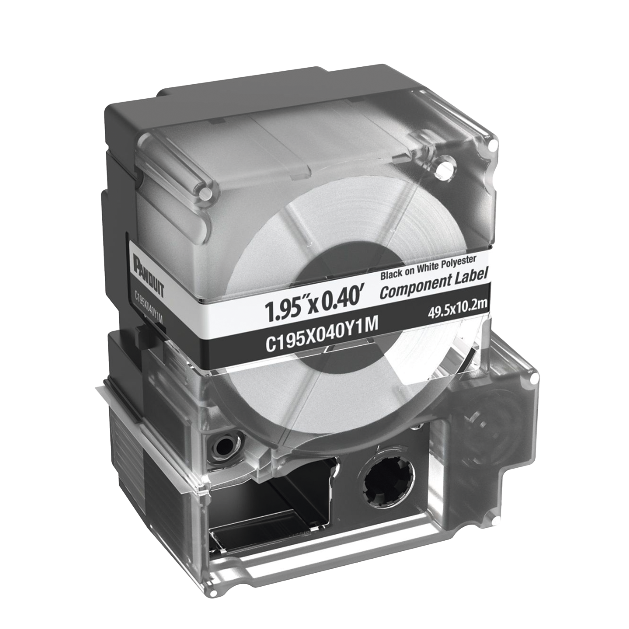 El casete de etiquetas de componente de poliéster no adhesivo C195X040Y1M incluye material de etiqueta y cinta para facilitar el cambio. Etiquetas troqueladas diseñadas para proporcionar la máxima calidad estética y apariencia para identificar la placa frontal de un solo puerto.