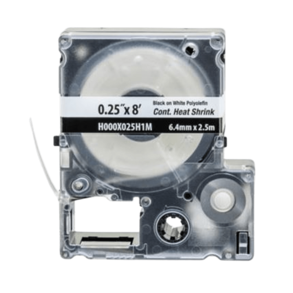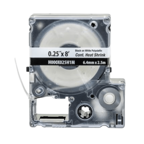 Casete de Etiquetas de Poliolefina de Cinta Continua, Tubo Termocontráctil, 6.4 mm (0.25 Pulgadas) de Ancho y 2.4 Metros (7.87 Pies) de Largo, para Cables de Calibre 22-18 AWG, Color Blanco H000X025H1M