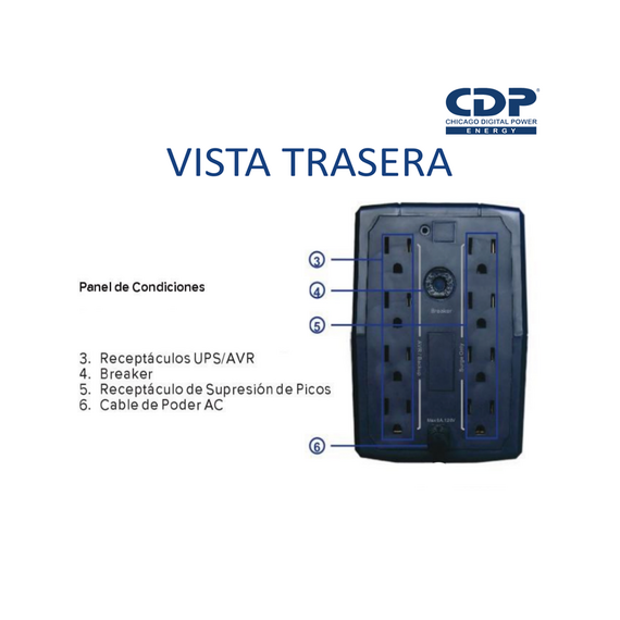 CDP R-UPR508 500VA/250W UPS Interactiva AVR 8 Salidas, 300 Joules, 120 Vac R-UPR508