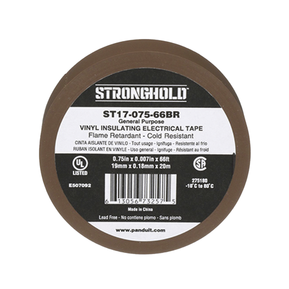 Cinta Eléctrica STRONGHOLD para Aislar, de PVC, Uso General Reparación y Mantenimiento, Grosor de 0.18mm (7 mil), Ancho de 19mm, y 20.12m de Largo, Color Café ST17-075-66BR