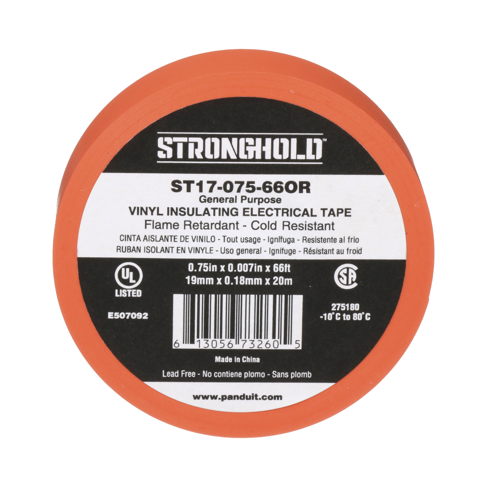 Cinta Eléctrica STRONGHOLD para Aislar, de PVC, Uso General Reparación y Mantenimiento, Grosor de 0.18mm (7 mil), Ancho de 19mm, y 20.12m de Largo, Color Naranja ST17-075-66OR