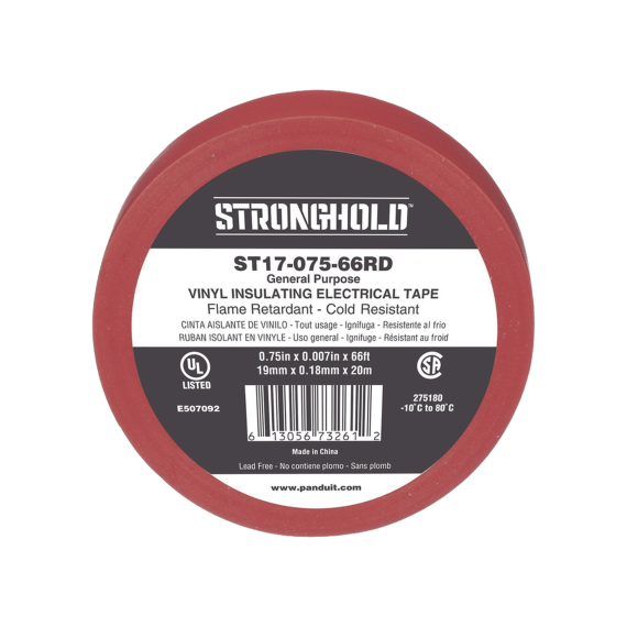 Cinta Eléctrica STRONGHOLD para Aislar, de PVC, Uso General Reparación y Mantenimiento, Grosor de 0.18mm (7 mil), Ancho de 19mm, y 20.12m de Largo, Color Rojo ST17-075-66RD